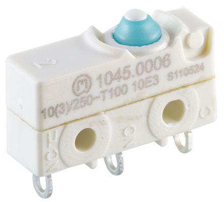 This is SPDT Button Microswitch 10 A @ 250 V ac manufactured by Marquardt. The manufacturer part number is 01045.0903-00. It has a ≤3.2 n of operating force. Whereas, the minimum operating temperature of the product is -40°c. It is IP rated with ip00, ip67. The rated contact current is 10 a @ 250 v ac. The product has -40 → +100°c of operating temperature range. The contact is equipped with spdt configuration. The casing is constructed from highly stable pa laminated glass fiber-reinforced material. The product carries button actuator. The product is made from sturdy ag materials. The product also provide mechanical stability with 10000000cycles. It carries a release force of ≤1n. It has a maximum operating temperature of +100°c. The terminal is a solder type. It has a housing switch housing .