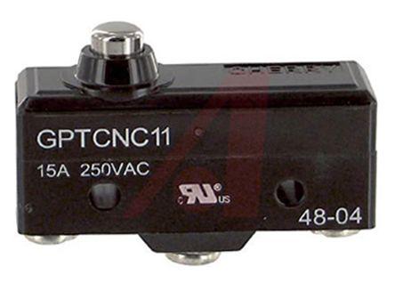This is SPDT Button Microswitch 15 A manufactured by ZF. The manufacturer part number is GPTCNC11. It has a 12.3 oz of operating force. The product complies with all safety standards, such as culus recognized, ul e184788, vde. It is IP rated with ip40. The rated contact current is 15 a. Whereas, the minimum operating temperature of the product is -5 (vde) °c, 0 (ul) °c. Moreover, the product has a nominal 250v ac voltage rating. The contact is equipped with spdt configuration. The casing is constructed from highly stable phenolic material. The product carries button actuator. The product has -5 → +40 (vde) °c, 0 → +55 (ul) °c of operating temperature range. It carries a release force of 113.398gf. It has a maximum operating temperature of +40 (vde) °c, +55 (ul) °c. The terminal is a screw type. The product is made from sturdy silver alloy materials.