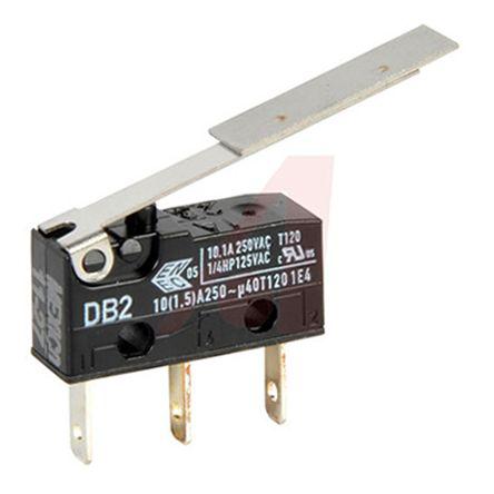 This is SPDT Straight Lever Microswitch 10.1 A manufactured by ZF. The manufacturer part number is DB2CBWAB. The product complies with all safety standards, such as en61058, ul e314201, ul1054. It is IP rated with ip50. The rated contact current is 10.1 a. Whereas, the minimum operating temperature of the product is -40°c. Moreover, the product has a nominal 125/250v ac voltage rating. The contact is equipped with spdt configuration. The casing is constructed from highly stable pet material. The product carries straight lever actuator. The product has -40 → +120°c of operating temperature range. It has a maximum operating temperature of +120°c. The terminal is a quick connect type. The product is made from sturdy copper zinc alloy materials.