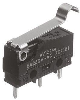 This is SPDT Simulated Roller Lever Microswitch 100 mA @ 30 V dc manufactured by Panasonic. The manufacturer part number is AVT344461. It has a 0.34 n of operating force. Whereas, the minimum operating temperature of the product is -25°c. It is IP rated with ip40. The rated contact current is 100 ma @ 30 v dc. The product has -25 → +85°c of operating temperature range. The contact is equipped with sp-co configuration. The product carries simulated roller lever actuator. The product also provide mechanical stability with 5 x 10^5operations. It carries a release force of 0.029n. It has a maximum operating temperature of +85°c. The terminal is a pcb type. The product is made from sturdy triple clad gold materials.