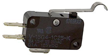 This is SPDT Simulated Roller Lever Microswitch 15 A @ 250 V ac manufactured by Omron. The manufacturer part number is V15G41C25KBYOMI. It has a 200 gf of operating force. Whereas, the minimum operating temperature of the product is -25°c. It is IP rated with ip40. The rated contact current is 15 a @ 250 v ac. The product has -25 → +80°c of operating temperature range. The contact is equipped with sp-co configuration. The casing is constructed from highly stable thermosetting material. The product carries simulated roller lever actuator. The product also provide mechanical stability with 100000operations. It carries a release force of 14gf. It has a maximum operating temperature of +80°c. The terminal is a quick connect type. The product is made from sturdy silver alloy materials.