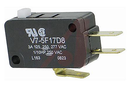 This is SPDT Pin Plunger Microswitch 3 A manufactured by Honeywell. The manufacturer part number is V7-5F17D8. It has a 0.15 n of operating force. Whereas, the minimum operating temperature of the product is -40°c. The product has -40 → +85°c of operating temperature range. The rated contact current is 3 a. The contact is equipped with spdt configuration. The casing is constructed from highly stable thermoplastic material. The product carries pin plunger actuator. The product also provide mechanical stability with 10000000cycles. The product is made from sturdy silver/gold plated/gold alloy materials. It has a maximum operating temperature of +85°c. The terminal is a quick connect type. It has a v7 housing switch housing .