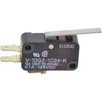 This is SwitchMiniatureSnap ActionSPDTSolder-Q.C.TERM.HINGE LEVERSTAND.LOADACT manufactured by Omron. The manufacturer part number is V-10G2-1C24-K.