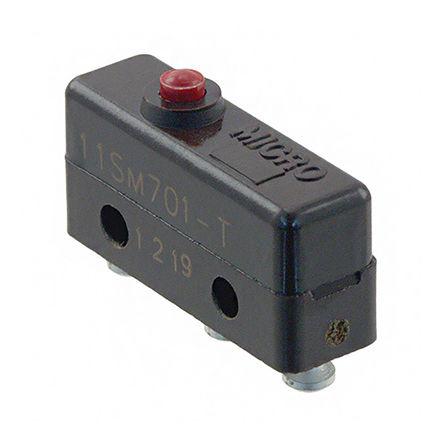 This is SPDT Pin Plunger Microswitch 5 A @ 250 V ac manufactured by Honeywell. The manufacturer part number is 11SM701-T. It has a 0.56 n of operating force. Whereas, the minimum operating temperature of the product is -54°c. The product has -54 → +121°c of operating temperature range. The rated contact current is 5 a @ 250 v ac. The contact is equipped with spdt configuration. The casing is constructed from highly stable phenolic material. The product carries pin plunger actuator. The product also provide mechanical stability with 10000000operations. It carries a release force of 0.14n. It has a maximum operating temperature of +121°c. The terminal is a solder type. The product is made from sturdy silver materials.