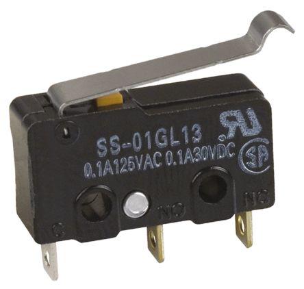 This is SPDT-NO/NC Simulated Roller Lever Microswitch 100 mA @ 30 V dc manufactured by Omron. The manufacturer part number is SS-01GL13-E. It has a 0.08 n of operating force. Whereas, the minimum operating temperature of the product is -25°c. It is IP rated with ip40. The rated contact current is 100 ma @ 30 v dc. The product has -25 → +85°c of operating temperature range. The contact is equipped with spdt-no/nc configuration. The product carries simulated roller lever actuator. The product also provide mechanical stability with 30000000operations. It carries a release force of 0.01n. It has a maximum operating temperature of +85°c. The terminal is a solder type. The product is made from sturdy gold alloy materials.