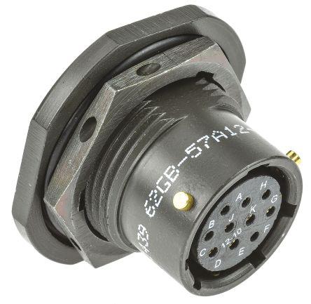 This is 62GB Series 10 Way Panel Mount MIL Spec Circular Connector Receptacle Socket ContactsShell Size 12 manufactured by Amphenol. The manufacturer part number is 62GB-57A12-10SN. The product 62gb, is a highly preferred choice for users. It is a type of bayonet coupling mating. The product is available in panel mount configuration. The connector has miniature size. In addition, female is the available "Gender" of the product. It has straight body orientation. It allows solder termination method. This female contact is widely suited for specific applications. The product also features robust aluminium housing material. The shell is plated with high stable zinc cobalt material. The high-quality gold is used as contact plating material. The shell has 12 size. The product contains 10 contacts. It has a maximum operating temperature of +125°c. Whereas, the minimum operating temperature of the product is -55°c. It complies with mil-dtl-26482 military standard.