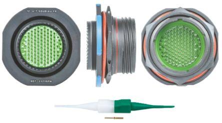 This is 8D Series 100 Way Panel Mount MIL Spec Circular Connector Receptacle Pin ContactsShell Size 23 manufactured by Souriau. The manufacturer part number is 8D723Z35PN. The product 8d, is a highly preferred choice for users. The product has a current rating of 5a. It is a type of screw coupling mating. The product is available in panel mount configuration. It is IP rated with ip67. In addition, female is the available "Gender" of the product. It has straight body orientation. It allows crimp termination method. This male contact is widely suited for specific applications. It complies with mil-dtl-38999 military standard. The product also features robust aluminium housing material. The connector has standard size. The high-quality gold over nickel is used as contact plating material. The shell has 23 size. The product contains 100 contacts. It has a maximum operating temperature of +200°c. Whereas, the minimum operating temperature of the product is -65°c. The shell is plated with high stable zinc nickel material. The product is made from sturdy copper alloy materials.