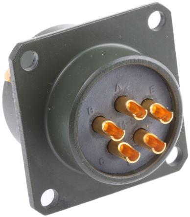 This is 62GB Series 5 Way Box Mount MIL Spec Circular Connector Receptacle Pin ContactsShell Size 14 manufactured by Amphenol. The manufacturer part number is 62GB-12E14-05PN. The product 62gb, is a highly preferred choice for users. It is a type of bayonet coupling mating. The product is available in box mount configuration. Moreover, the product has a nominal 1.2 kv dc, 850 v ac voltage rating. Whereas, the minimum operating temperature of the product is -55°c. In addition, female is the available "Gender" of the product. It has a decent olive colour. It allows solder termination method. This male contact is widely suited for specific applications. The shell is plated with high stable zinc cobalt material. The high-quality gold is used as contact plating material. The shell has 14 size. The product contains 5 contacts. It has a maximum operating temperature of +125°c. It has straight body orientation. It complies with mil-dtl-26482 military standard.
