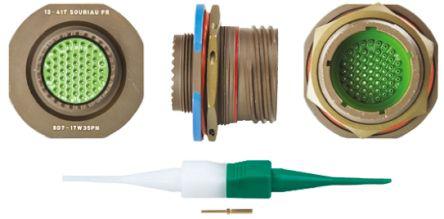 This is 8D Series 55 Way Panel Mount MIL Spec Circular Connector Receptacle Pin ContactsShell Size 17 manufactured by Souriau. The manufacturer part number is 8D717W35PN. The product 8d, is a highly preferred choice for users. The product has a current rating of 5a. It is a type of screw coupling mating. The product is available in panel mount configuration. It is IP rated with ip67. In addition, female is the available "Gender" of the product. It has straight body orientation. It allows crimp termination method. This male contact is widely suited for specific applications. It complies with mil-dtl-38999 military standard. The product also features robust aluminium housing material. The connector has standard size. The high-quality gold over nickel is used as contact plating material. The shell has 17 size. The product contains 55 contacts. It has a maximum operating temperature of +175°c. Whereas, the minimum operating temperature of the product is -65°c. The shell is plated with high stable cadmium material. The product is made from sturdy copper alloy materials.