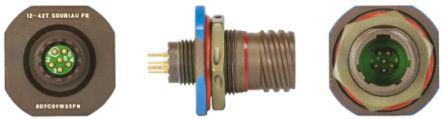 This is 8D Series 6 Way Panel Mount MIL Spec Circular Connector Receptacle Pin ContactsShell Size 09 Screw Coupling manufactured by Souriau. The manufacturer part number is 8D7C09W35PN. The product 8d, is a highly preferred choice for users. The product has a current rating of 5a. It is a type of screw coupling mating. The product is available in panel mount configuration. It is IP rated with ip67. In addition, female is the available "Gender" of the product. It has straight body orientation. It allows crimp termination method. This male contact is widely suited for specific applications. It complies with mil-dtl-38999 military standard. The product also features robust aluminium housing material. The connector has standard size. The high-quality gold over nickel is used as contact plating material. The shell has 09 size. The product contains 6 contacts. It has a maximum operating temperature of +175°c. Whereas, the minimum operating temperature of the product is -65°c. The shell is plated with high stable cadmium material. The product is made from sturdy copper alloy materials.