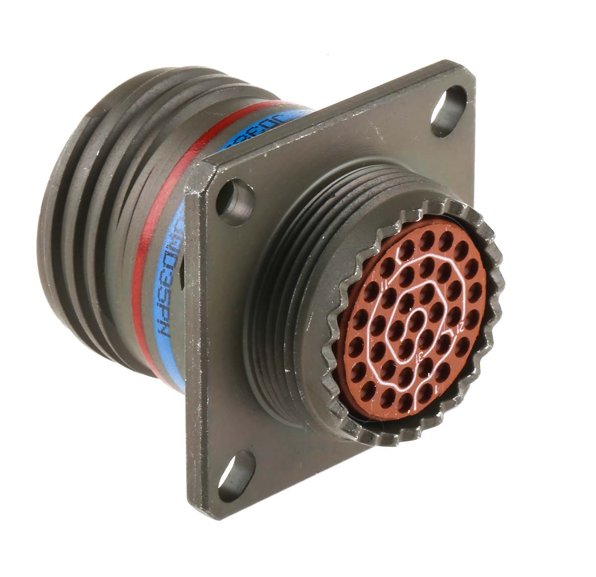 This is Amphenol D38999 37 Way Wall Mount MIL Spec Circular Connector Receptacle Pin ContactsShell Size 15 Quick Coupling manufactured by Amphenol Limited. The manufacturer part number is D38999/20WD35PN. The product d38999, is a highly preferred choice for users. The product has a current rating of 5 (size 22d)a. It is a type of quick coupling threaded mating. The product is available in wall mount configuration. Moreover, the product has a nominal 400 v ac, 550 v dc voltage rating. The product contains 37 contacts. In addition, female is the available "Gender" of the product. It has a decent green colour. It allows crimp termination method. This male contact is widely suited for specific applications. The product also features robust aluminium housing material. The connector has subminiature size. The shell has 15 size. It has a strain relief characteristic yes . It has a maximum operating temperature of +175°c. It has straight body orientation. The shell is plated with high stable olive drab cadmium material. It complies with mil-dtl-38999 military standard.