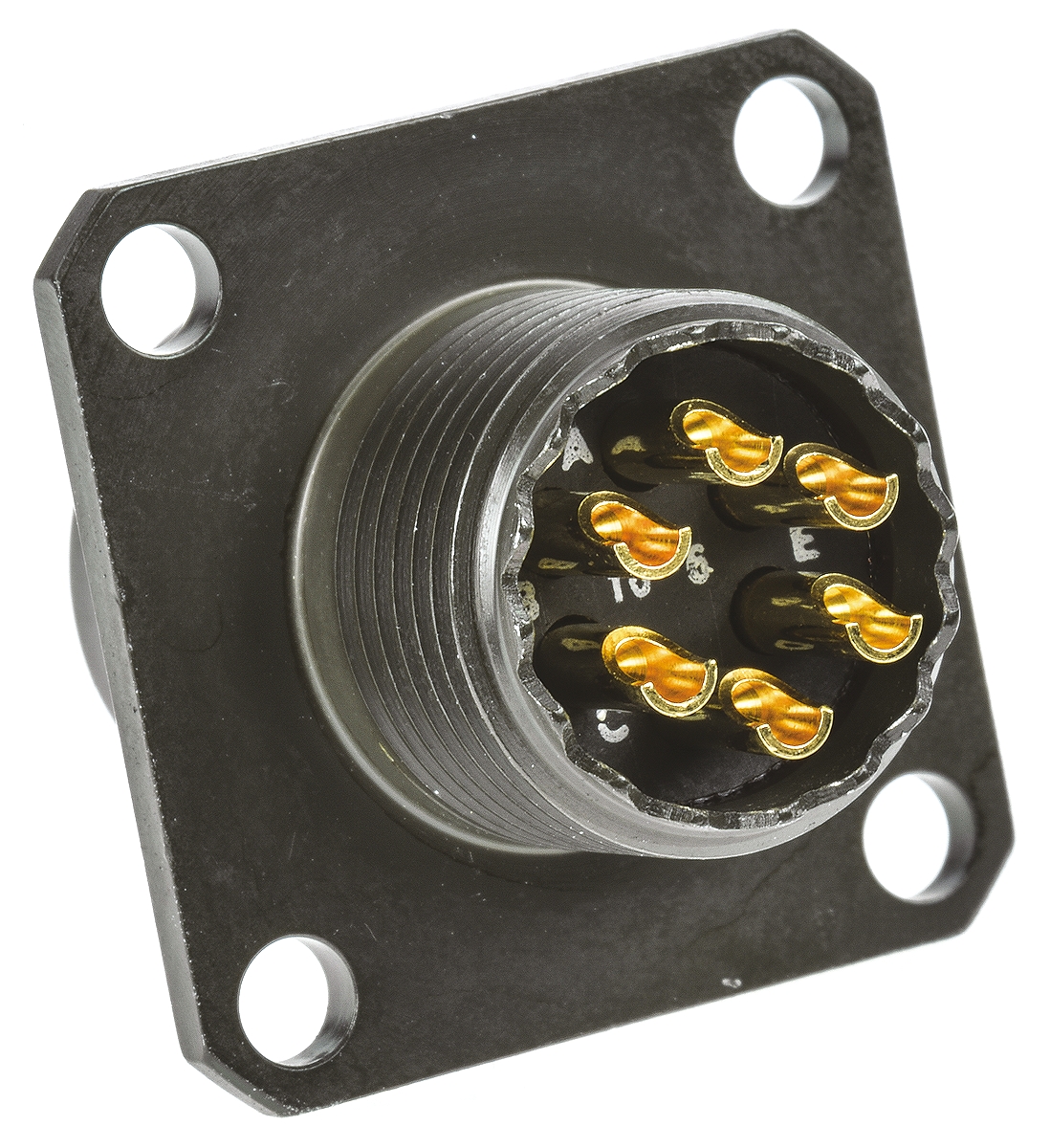 This is Amphenol 62GB 6 Way Flange Mount MIL Spec Circular Connector Receptacle Pin ContactsShell Size 10 Bayonet Coupling manufactured by Amphenol Limited. The manufacturer part number is 62GB-50T10-06PN. The product 62gb, is a highly preferred choice for users. It is a type of bayonet coupling mating. The product is available in flange mount configuration. The connector has miniature size. In addition, female is the available "Gender" of the product. It has straight body orientation. It allows solder termination method. This male contact is widely suited for specific applications. The product also features robust aluminium housing material. The shell is plated with high stable zinc cobalt material. The shell has 10 size. The high-quality gold is used as contact plating material. The product contains 6 contacts. It has a maximum operating temperature of +125°c. Whereas, the minimum operating temperature of the product is -55°c. It complies with mil-dtl-26482 military standard.