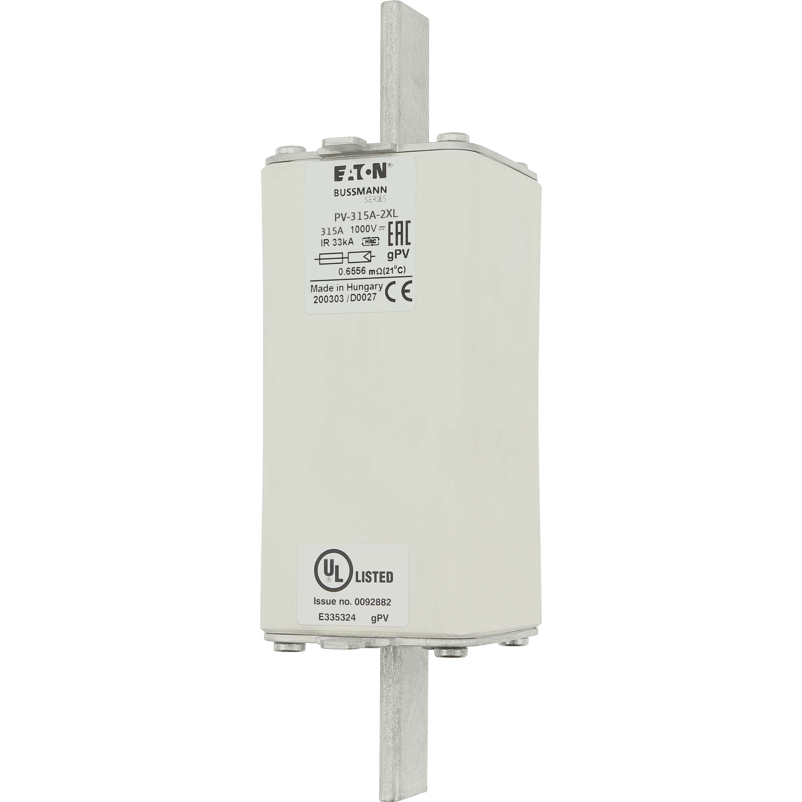 This is manufactured by Eaton. The manufacturer part number is PV-315A-2XL. The product has a current rating of 315a. Moreover, the product has a nominal 1kv voltage rating. It has a typical 205mm fixing centres . A fuse with a 2xl size. The fuse complies with iec 60269-6 standards. It has typical 4 weeks of manufacturer standard lead time. Its typical moisture sensitivity level is 1 (unlimited). It is available in the standard package of 1. The eaton's product offers user-desired applications.