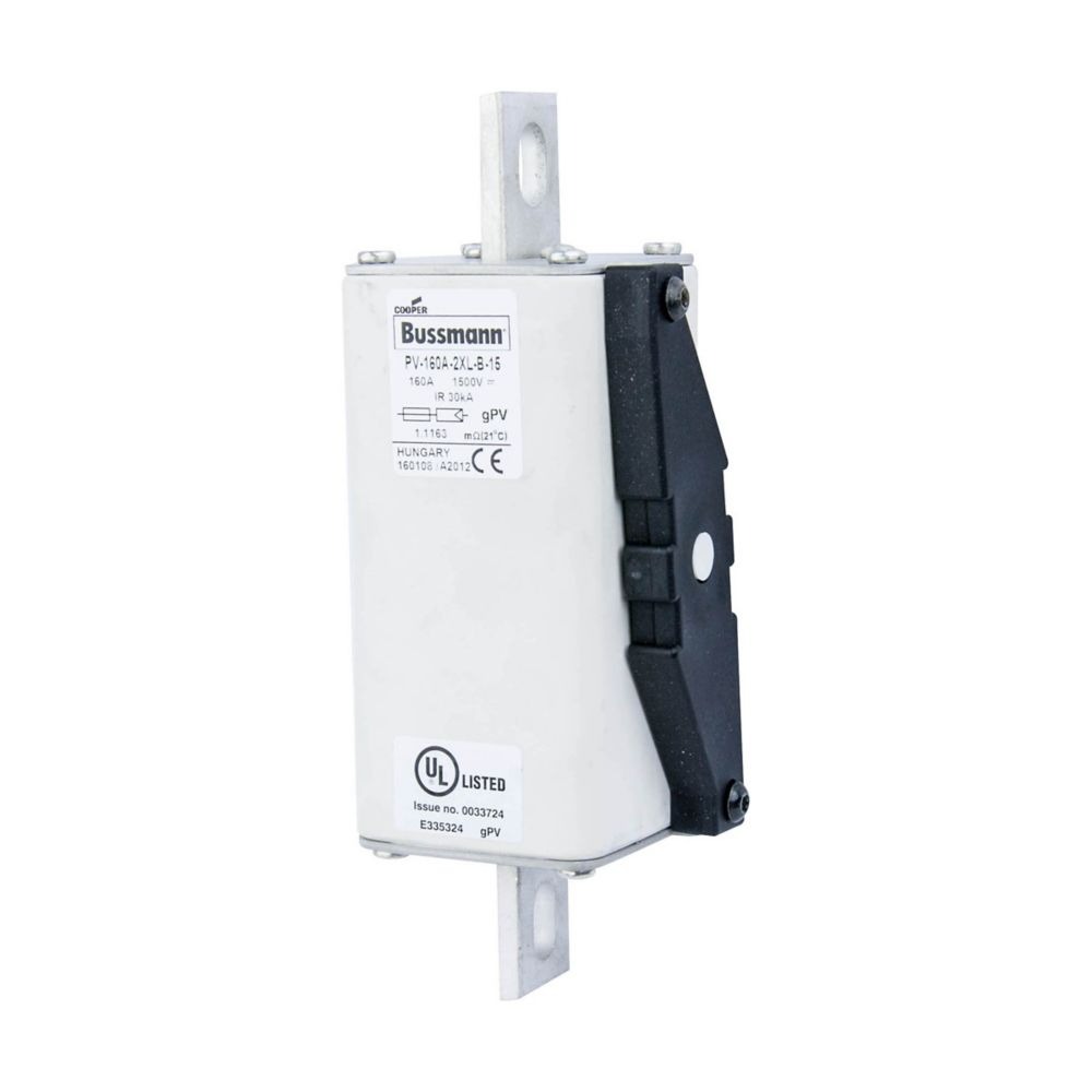 This is manufactured by Eaton. The manufacturer part number is PV-160A-2XL-B-15. Is it a better world product? yes. The product has a current rating of 160a. Moreover, the product has a nominal 1.5kv voltage rating. It has a typical 166mm fixing centres . A fuse with a 2xl size. The fuse complies with iec 60269-6 standards. It has typical 8 weeks of manufacturer standard lead time. Its typical moisture sensitivity level is 1 (unlimited). It is available in the standard package of 1. The eaton's product offers user-desired applications.