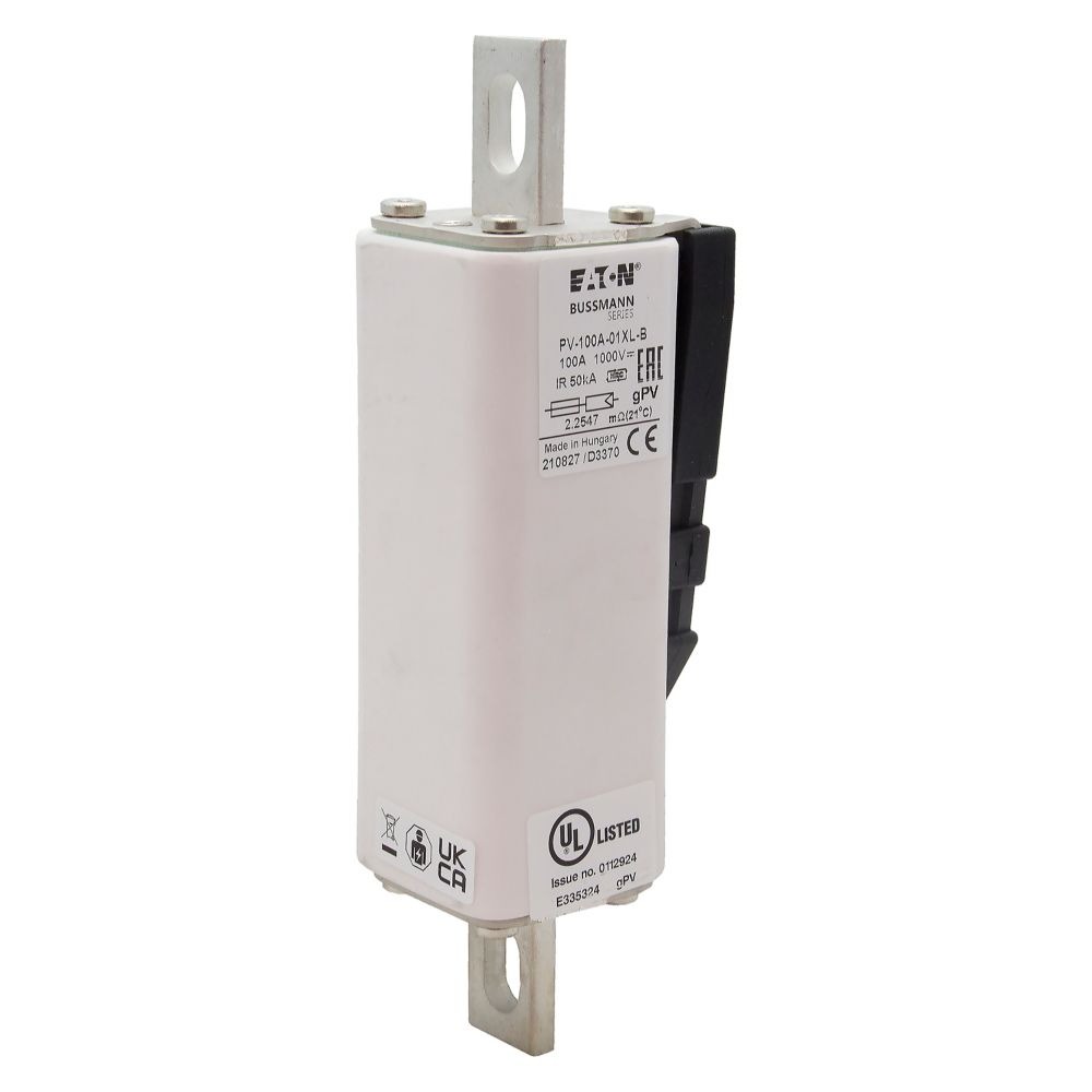 This is manufactured by Eaton. The manufacturer part number is PV-100A-1XL-B-15. Is it a better world product? yes. Moreover, the product has a nominal 1.5kv voltage rating. It has a typical 159mm fixing centres . A fuse with a 1xl size. The fuse complies with iec 60269-6 standards. The product has a current rating of 100a. It has typical 8 weeks of manufacturer standard lead time. Its typical moisture sensitivity level is 1 (unlimited). It is available in the standard package of 1. The eaton's product offers user-desired applications.