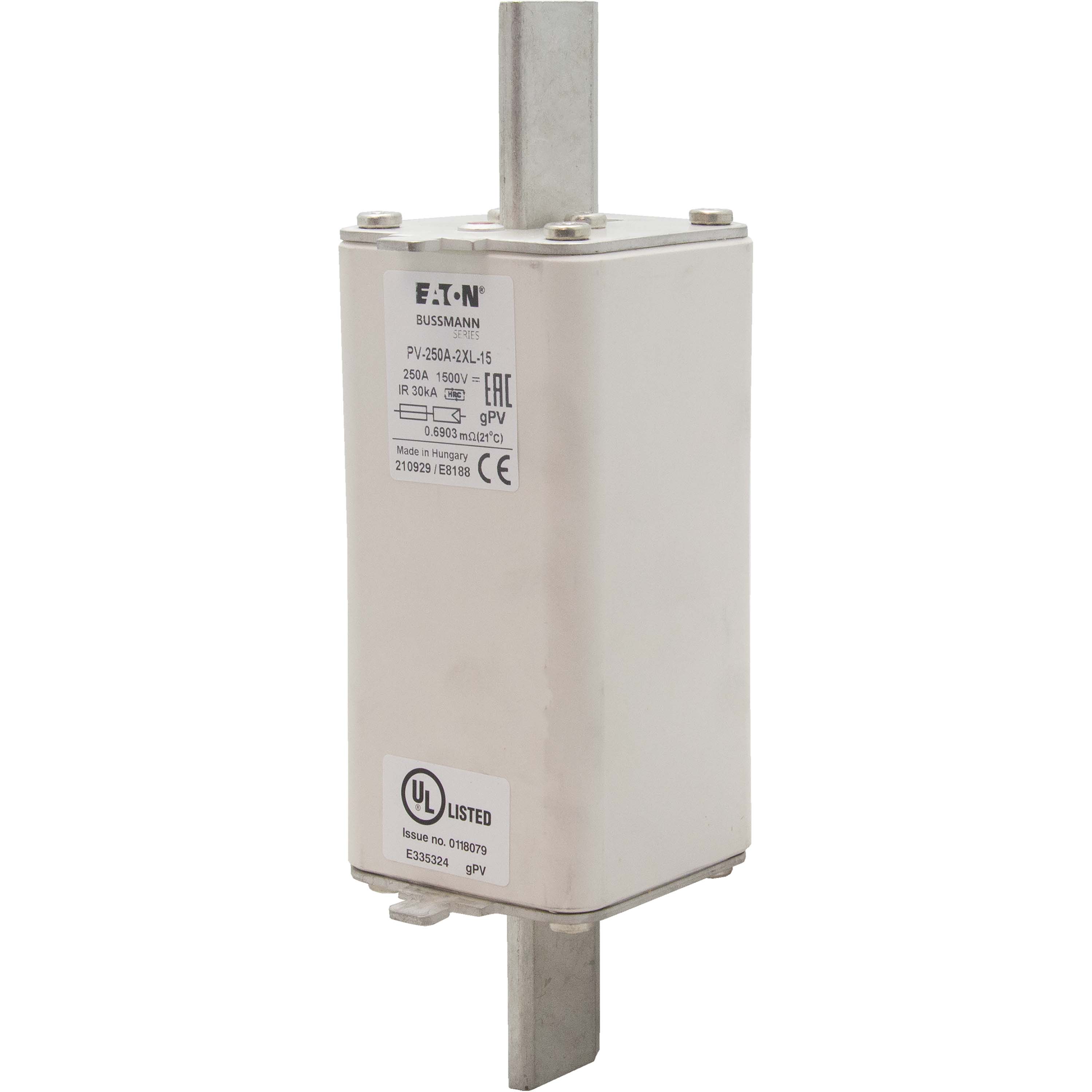 This is manufactured by Eaton. The manufacturer part number is PV-250A-2XL-15. The product has a current rating of 250a. Moreover, the product has a nominal 1.5kv voltage rating. It has a typical 205mm fixing centres . A fuse with a 2xl size. The fuse complies with iec 60269-6 standards. It has typical 8 weeks of manufacturer standard lead time. Its typical moisture sensitivity level is 1 (unlimited). It is available in the standard package of 1. The eaton's product offers user-desired applications.
