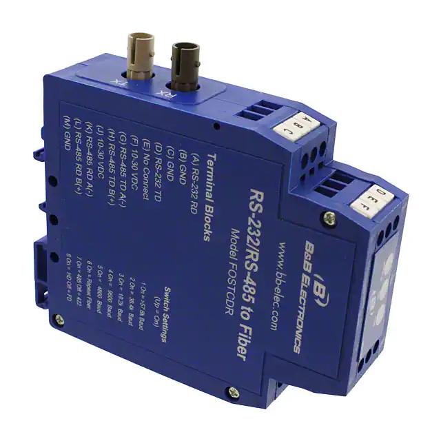 This is manufactured by B&B SmartWorx, Inc.. The manufacturer part number is BB-FOSTCDR. It is shipped in bag package . The product is rohs3 compliant. Its typical moisture sensitivity level is vendor undefined. It comes in converter, serial to fiber optic configuration.