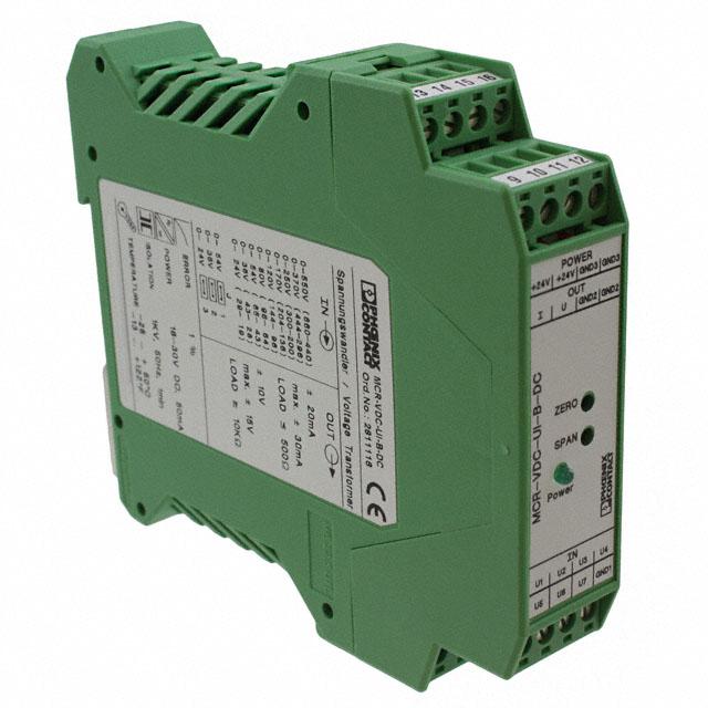 This is manufactured by Phoenix Contact. The manufacturer part number is 2811116. It is assigned with possible HTSUS value of 9030.33.3400. The product is rohs compliant. Moreover, it has spring terminal terminal style. The product has -25°c ~ 50°c operating temperature range. It is approved by ce, culus. It comes in dc voltage transducer configuration. Typical input range of ±660vdc. It responds within 12ms. The phoenix contact's product offers user-desired applications. Features a 660vac (working), 1500vac (test) isolation. Its typical moisture sensitivity level is 1 (unlimited). Moreover, the product allow the output of ±10vdc, ±20ma. The product is available in din rail configuration. The product mcr, is a highly preferred choice for users. In addition, bulk is the available packaging type of the product. It has optimum voltage supply of 18.5 ~ 30.2vdc. The product is designated with the ear99 code number.