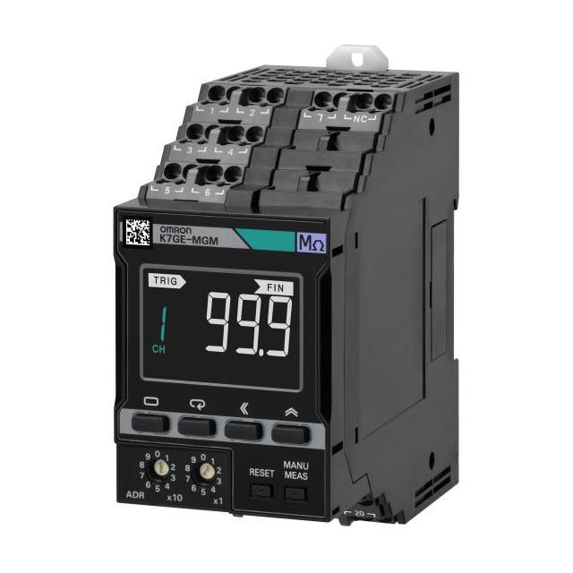 This is manufactured by Omron Automation and Safety. The manufacturer part number is K7GE-MGMA. The product is rohs compliant. The product has -10°c ~ 55°c operating temperature range. It comes in resistance monitoring configuration. It has 100kohm ~ 99.9mohm trip range. Furthermore, it has asolid state output. The product has energized high/low trip status. It is shipped in box package . Its typical moisture sensitivity level is not applicable. It has an integral npn circuit. The given contact rating of the product and its voltage includes 0.05a @ 24vdc. It has a long 13 weeks standard lead time. A product has a 0 sec ~ 1 sec delay time. The product is available in din rail configuration. The product k7ge-mg, is a highly preferred choice for users. It has optimum voltage supply of 100 ~ 240vac.