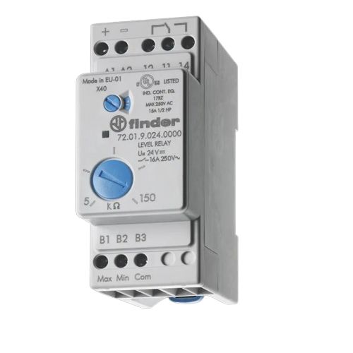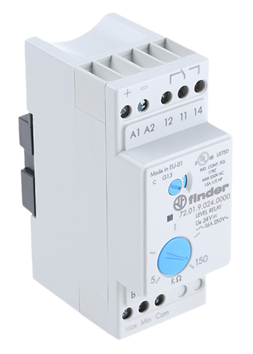 This is Level Monitoring Relay with SPDT Contacts 1 Phase 24 V dc manufactured by Finder. The manufacturer part number is 72.01.9.024.0000. It has a maximum operating temperature of +60°c. Additionally, its time delay is about 0.5 → 7s . The given dimensions of the product include 58 x 35 x 84mm. The product is available in din rail configuration. The product has +60°c of operating temperature range. The product 72, is a highly preferred choice for users. Additionally, it is designed for level monitoring application . Whereas, the minimum operating temperature of the product is -20°c. In addition, the height is 84mm. Furthermore, the product is 35mm wide. Its accurate length is 58mm. Its electrical phase configuration includes 1. The contact is equipped with spdt configuration. It has equipped with 1 poles. The terminal is a screw type. The product complies with all safety standards, such as ce, eac.