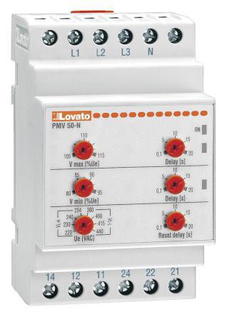 This is Voltage Monitoring Relay with SPDT Contacts 3 Phase 480 → 600 V ac manufactured by Lovato. The manufacturer part number is PMV50NA600. Moreover, it has self powered voltage sensitivity . It has a maximum operating temperature of +60°c. Additionally, its time delay is about 0.1 → 20 s . The given dimensions of the product include 35.8 x 64.9 x 104.7 mm. The product is available in din rail configuration. The product has -20 → +60 °c of operating temperature range. The product pmv50, is a highly preferred choice for users. Additionally, it is designed for voltage monitoring application . It has maximum 400v ac sensed voltage . In addition, the height is 104.7mm. Furthermore, the product is 64.9mm wide. Its accurate length is 35.8mm. The product has a voltage sensing range about maximum of 400 v ac . Features 480 → 600 v ac supply voltage. Whereas, the minimum operating temperature of the product is -20°c. Its electrical phase configuration includes 3. The contact is equipped with spdt configuration. It has equipped with 1 poles. The terminal is a screw type. The product complies with all safety standards, such as ce, csa c22.2 no. 14, culus, file e93601, iec/en 60255-5, iec/en 61000-6-2, iec/en 61000-6-3, ul 508, ul listed.