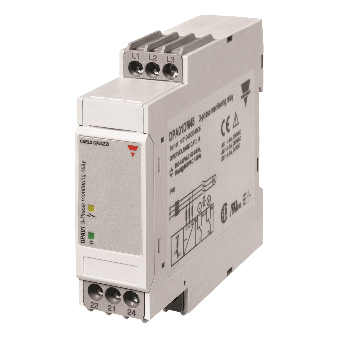 This is Phase Voltage Monitoring Relay with DPDT Contacts 3 Phase 380 → 480 V ac manufactured by Carlo Gavazzi. The manufacturer part number is DPA01DM48. Moreover, it has phase loss, phase rotation voltage sensitivity . Additionally, it is designed for phase monitoring application . The contact is equipped with spdt configuration. Its electrical phase configuration includes 3.