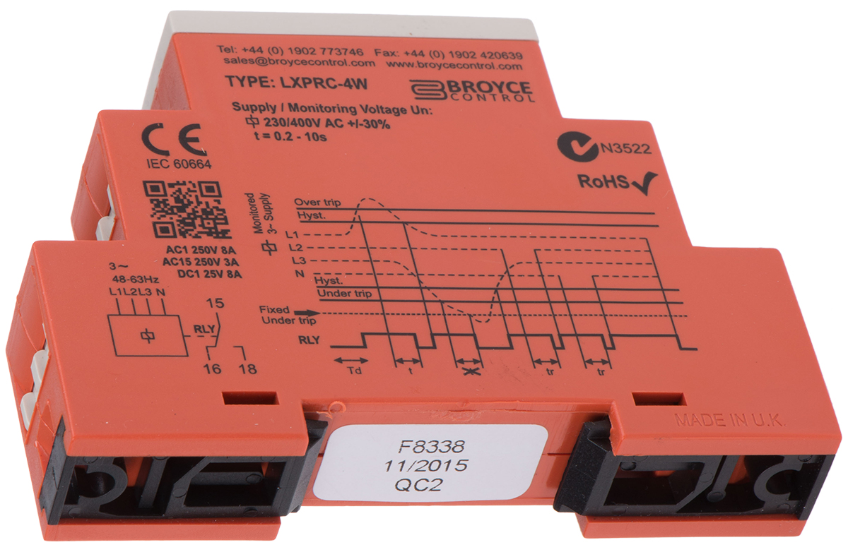 This is Phase Voltage Monitoring Relay with SPDT Contacts 230 V ac manufactured by Broyce Control. The manufacturer part number is LXPRC-4W 230V (400V). Moreover, it has overvoltage, undervoltage voltage sensitivity . Its typical current range is maximum of 8a . Additionally, its time delay is about 0.2 → 10s . The given dimensions of the product include 66.5 x 17.5 x 89mm. The product is available in din rail configuration. The product has +60°c of operating temperature range. The product l, is a highly preferred choice for users. Additionally, it is designed for phase, voltage monitoring application . In addition, the height is 89mm. Furthermore, the product is 17.5mm wide. Its accurate length is 66.5mm. It has phase failure sensitivity . Whereas, the minimum operating temperature of the product is -20°c. Its electrical phase configuration includes 3. It has a maximum operating temperature of +60°c. The product also provides special features, such as adjustment for trip level & time delay. The contact is equipped with spdt configuration. It has equipped with 1 poles. The terminal is a screw type. Additionally, it has about 48 → 63hz frequency sensing range .