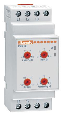 This is Voltage Monitoring Relay with SPDT Contacts 3 Phase 208 → 240 V ac manufactured by Lovato. The manufacturer part number is PMV30A240. Moreover, it has self powered voltage sensitivity . It has a maximum operating temperature of +60°c. Additionally, its time delay is about 0.1 → 20 s . The given dimensions of the product include 35.8 x 64.9 x 104.7 mm. The product is available in din rail configuration. The product has -20 → +60 °c of operating temperature range. The product pmv30, is a highly preferred choice for users. Additionally, it is designed for voltage monitoring application . It has maximum 400v ac sensed voltage . In addition, the height is 104.7mm. Furthermore, the product is 64.9mm wide. Its accurate length is 35.8mm. The product has a voltage sensing range about maximum of 400 v ac . Features 208 → 240 v ac supply voltage. Whereas, the minimum operating temperature of the product is -20°c. Its electrical phase configuration includes 3. The contact is equipped with spdt configuration. It has equipped with 1 poles. The terminal is a screw type. The product complies with all safety standards, such as ce, csa c22.2 no. 14, culus, file e93601, iec/en 60255-5, iec/en 61000-6-2, iec/en 61000-6-3, ul 508, ul listed.