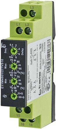 This is Phase Voltage Monitoring Relay with SPDT Contacts 3 Phase 277 → 480 V manufactured by Tele. The manufacturer part number is E1YM480Y/277VS1. Moreover, it has undervoltage voltage sensitivity . The given dimensions of the product include 17.5 x 65 x 87 mm. The product has a voltage sensing range about 277 → 480 v . Furthermore, the product is 65mm wide. Features 277 → 480 v supply voltage. Its electrical phase configuration includes 3. The product complies with all safety standards, such as en 60715, iec 60664-1, iec 60668-1, iec 60721-3-3, iec 60947-5-1. It has a maximum operating temperature of +55°c. The terminal is a screw type. Additionally, its time delay is about 0.1 → 10 s . The product is offered with a minimum 277 v sensed voltage . The product has -25 → +55 °c of operating temperature range. Additionally, it is designed for phase, voltage monitoring application . It has maximum 480v sensed voltage . The contact is equipped with spdt configuration. Its accurate length is 17.5mm. It has phase failure, phase sequence sensitivity . The product is available in din rail configuration. The product enya, is a highly preferred choice for users. In addition, the height is 87mm. Whereas, the minimum operating temperature of the product is -25°c. It has equipped with 1 poles.