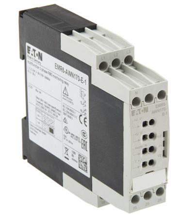 This is Phase Voltage Monitoring Relay 90 → 170 V ac Supply Voltage manufactured by Eaton. The manufacturer part number is 184768 | EMR6-AWN170-E-1. Additionally, its time delay is about 0.1 → 30 s . The given dimensions of the product include 22.5 x 109.5 x 78 mm. The product is available in din rail configuration. The product has -25 → +60 °c of operating temperature range. The product is offered with a minimum 90 v ac sensed voltage . The product emr6, is a highly preferred choice for users. Additionally, it is designed for phase, voltage monitoring application . Whereas, the minimum operating temperature of the product is -25°c. It has maximum 170v ac sensed voltage . In addition, the height is 78mm. Furthermore, the product is 109.5mm wide. Its accurate length is 22.5mm. Features 90 → 170 v ac supply voltage. With 60hz maximum frequency sensed . It has a minimum 50hz frequency sensed . The product has a voltage sensing range about 90 → 170 v ac . It has a maximum operating temperature of +60°c. The terminal is a screw type. Additionally, it has about 50 → 60 hz frequency sensing range .