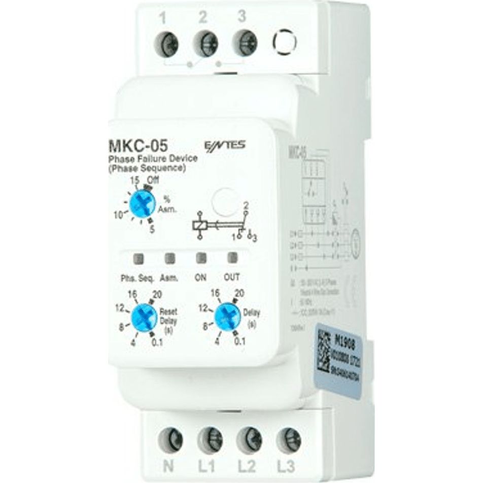 This is Phase Monitoring Relay 3 Phase SPDT DIN Rail manufactured by ENTES. The manufacturer part number is MKC-05. Moreover, it has phase sequence voltage sensitivity . The product is available in din rail configuration. Additionally, it is designed for phase monitoring application . The contact is equipped with spdt configuration. Its electrical phase configuration includes 3.