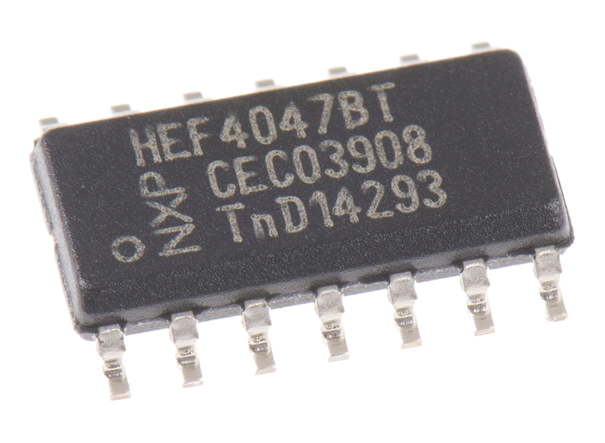 This is NXP Monostable Multivibrator 3 → 15 V 14-Pin SOIC manufactured by Nexperia. The manufacturer part number is HEF4047BT,652. The logic family is 4000. Furthermore, the product is 4 mm wide. It has a minimum 70ns pulse width . In addition, the height is 1.45mm. The product complies with automotive standard - no. On the other hand, it is featured with 3.6ma of max. low level output current. While a -3.6ma of maximum high level output current. It has a minimum 3v supply voltage . The package is a sort of soic. It consists of 1 elements per chip. monostable multivibrator is a versatile product designed to provide user-defined applications. It has a maximum operating temperature of 85°c. Its accurate length is 8.75mm. It contains 14 pins. It has a surface type mount . The product hef4047bt, is a highly preferred choice for users. The product requires a maximum 15v supply voltage . Whereas, the minimum operating temperature of the product is -40°c. It has a maximum 0.08ma quiescent current .