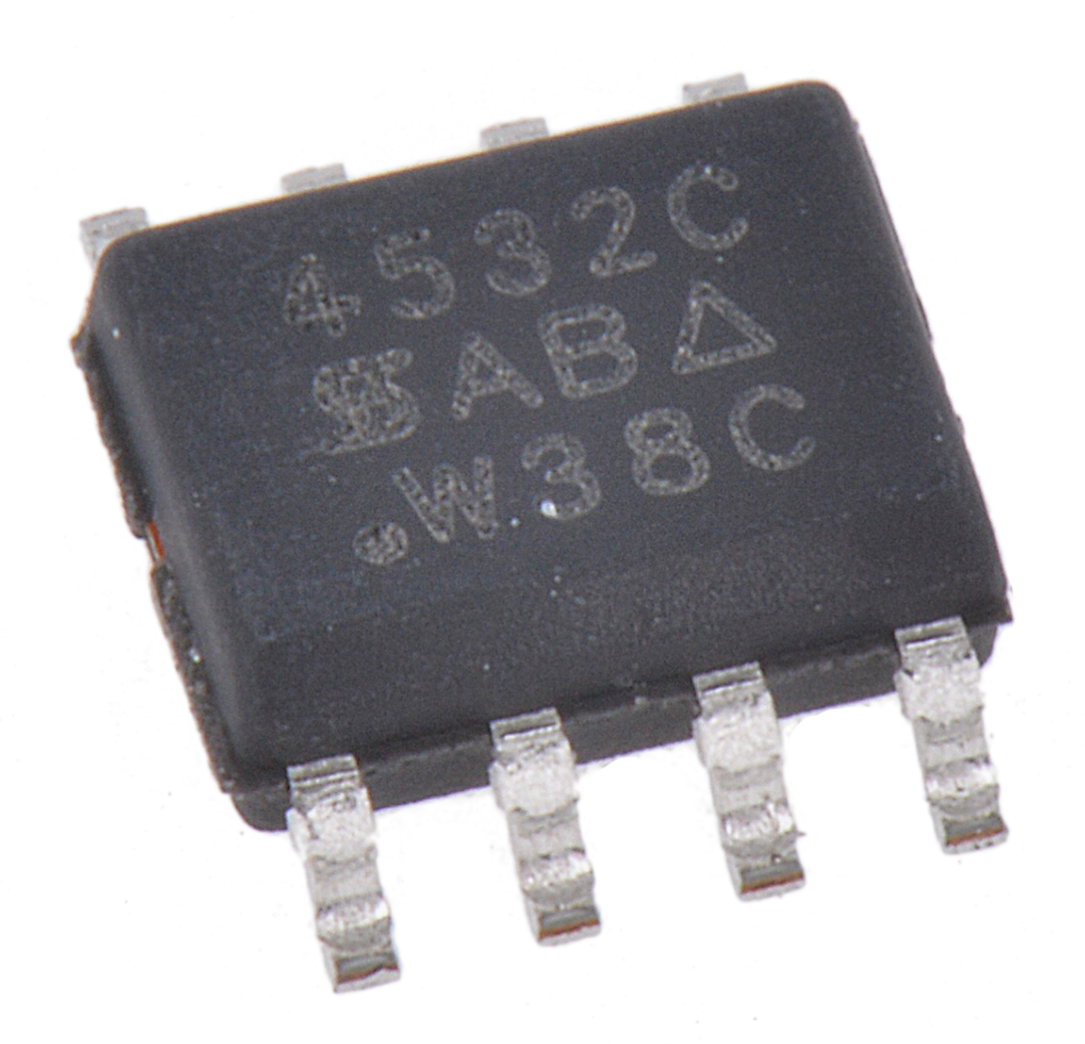 This is Dual N/P-channel MOSFET 4.3 A 6 A 30 V 8-Pin SOIC manufactured by Vishay. The manufacturer part number is SI4532CDY-T1-GE3. It has a maximum of 30 v drain source voltage. With a typical gate charge at Vgs includes 6 nc @ 10 v, 7.8 nc @ 10 v. The product is available in surface mount configuration. The product carries enhancement channel mode. Provides up to 2.78 w maximum power dissipation. It features a maximum gate source voltage of -20 v, +20 v. The product is available in [Cannel Type] channel. Furthermore, the product is 4mm wide. Its accurate length is 5mm. Whereas its minimum gate threshold voltage includes 1v. The package is a sort of soic. It consists of 2 elements per chip. Whereas, the minimum operating temperature of the product is -55 °c. While 4.3 a, 6 a of maximum continuous drain current. The transistor is manufactured from highly durable si material. It provides up to 65 mω, 140 mω maximum drain source resistance. In addition, the height is 1.5mm. It has a maximum operating temperature of +150 °c. It contains 8 pins. The product offers isolated transistor configuration.