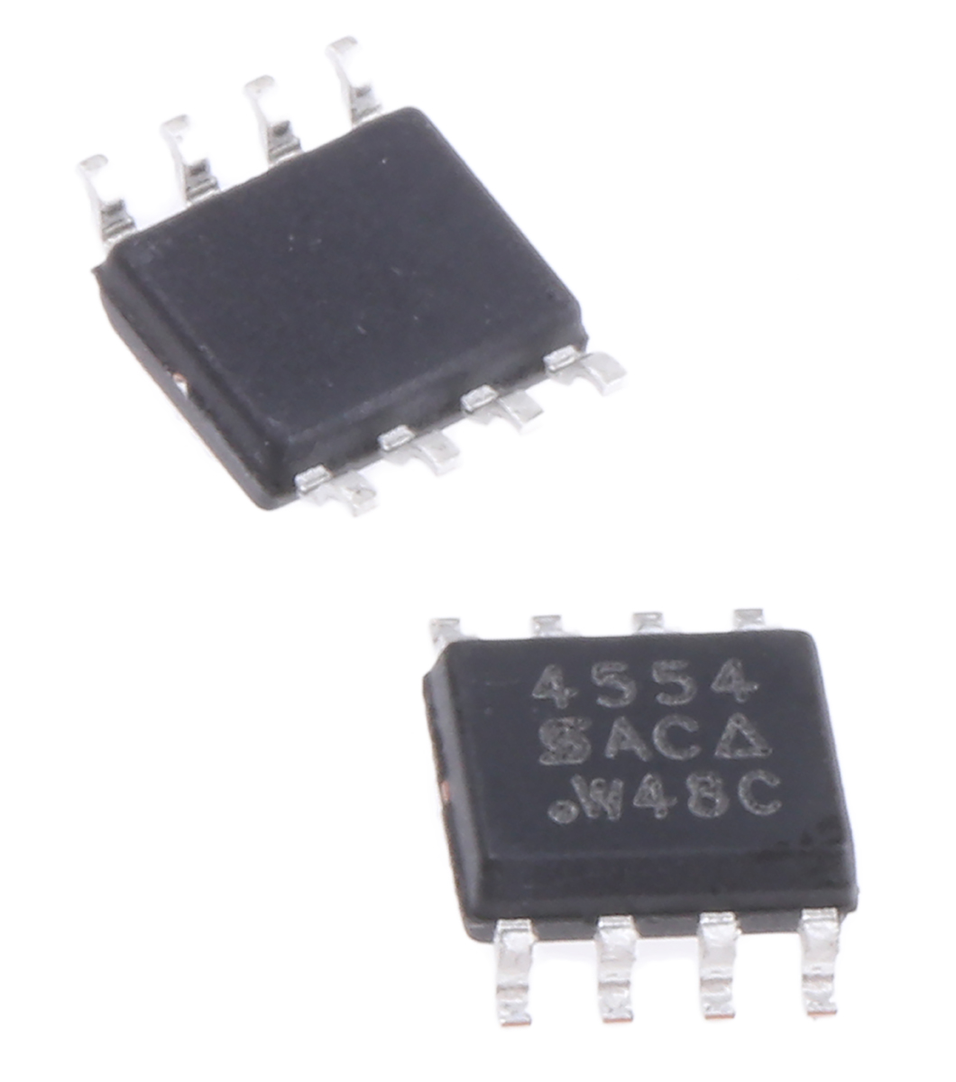 This is Dual N/P-channel MOSFET 8 A 40 V 8-Pin SOIC manufactured by Vishay. The manufacturer part number is SI4554DY-T1-GE3. It has a maximum of 40 v drain source voltage. With a typical gate charge at Vgs includes 13.3 nc @ 10 v, 41.5 nc @ 10 v. The product is available in surface mount configuration. The product carries enhancement channel mode. Provides up to 3.2 w maximum power dissipation. It features a maximum gate source voltage of -20 v, +20 v. The product is available in [Cannel Type] channel. Furthermore, the product is 4mm wide. Its accurate length is 5mm. Whereas its minimum gate threshold voltage includes 1v. The package is a sort of soic. It consists of 2 elements per chip. Whereas, the minimum operating temperature of the product is -55 °c. While 8 a of maximum continuous drain current. The transistor is manufactured from highly durable si material. It provides up to 27 mω, 34 mω maximum drain source resistance. In addition, the height is 1.5mm. It has a maximum operating temperature of +150 °c. It contains 8 pins. The product offers isolated transistor configuration.