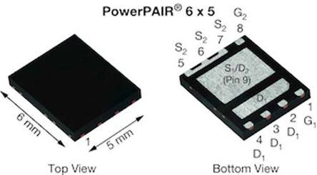 This is Dual N-Channel MOSFET 94.6 A 30 V 8-Pin PowerPAIR 6 x 5 manufactured by Vishay. The manufacturer part number is SIZ998BDT-T1-GE3. It has a maximum of 30 v drain source voltage. While 94.6 a of maximum continuous drain current. The product carries enhancement channel mode. The product siz998bdt, is a highly preferred choice for users. The product is available in [Cannel Type] channel. The product carries 2.2v of maximum gate threshold voltage. It provides up to 0.00439 ω maximum drain source resistance. The package is a sort of powerpair 6 x 5. It consists of 2 elements per chip. It contains 8 pins.