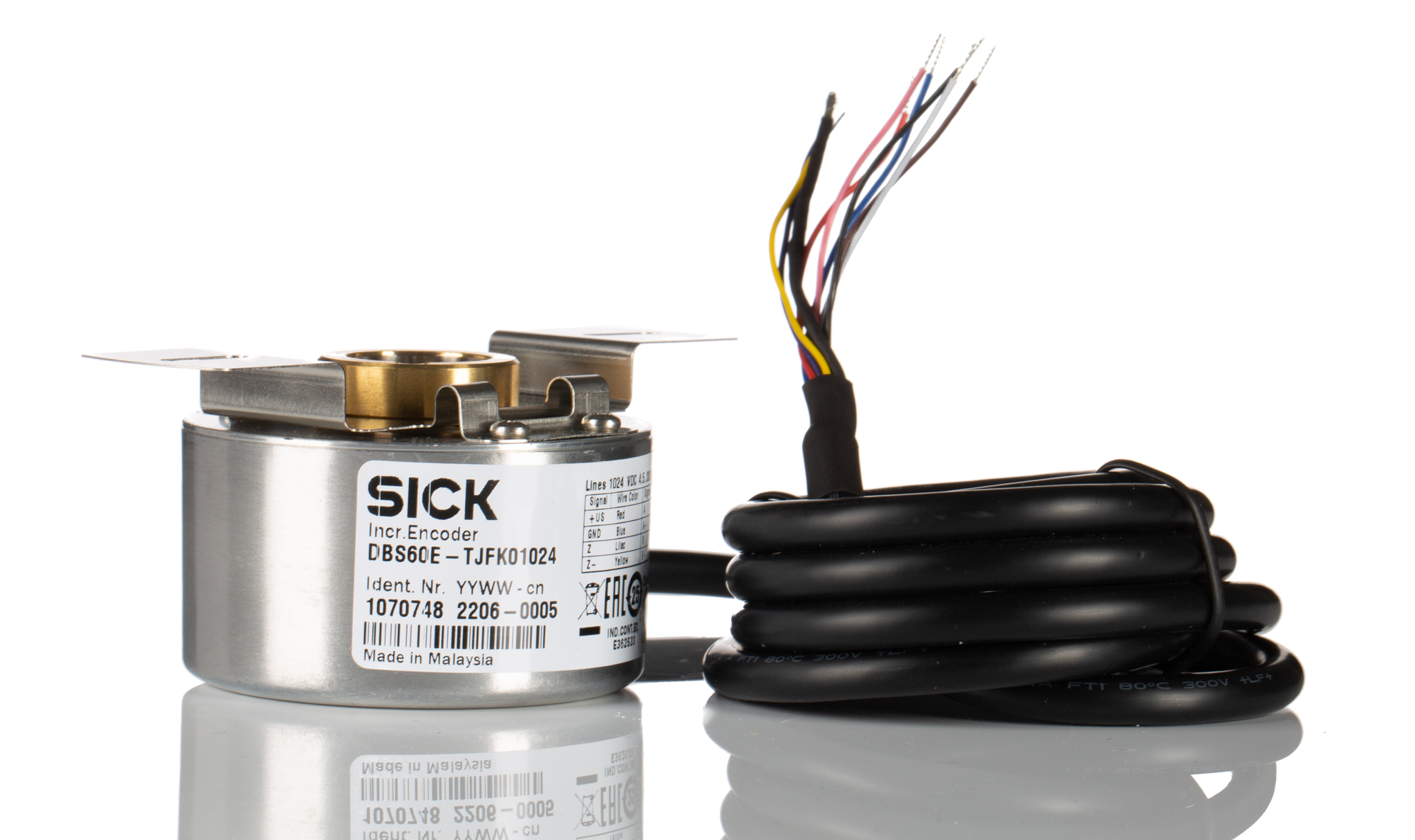 This is DBS60 Core Series Incremental Incremental Encoder 1024 ppr HTL TTL Signal Hollow Type 6mm → 5/8in Shaft manufactured by SICK. The manufacturer part number is DBS60E-TJFK01024 / 1070748. It exhibits 1024 pulses per resolution . The diameter of the shaft is 6mm → 5/8in. The output signal is a kind of htl, ttl. The product is available in hollow shaft configuration. It is IP rated with ip65. The product dbs60 core, is a highly preferred choice for users. It has an overall width of 58mm. Additionally, the product has a hollow type shaft . Features 4.5 → 30 v supply voltage. Whereas, the minimum operating temperature of the product is -30°c. It has a maximum 9000rpm resolutions . Similarly, the product has 41.8mm of overall depth. It has a maximum operating temperature of +100°c. It is created using incremental encoder technology . Moreover, it has 58mm of overall height. It allows cable connection type.