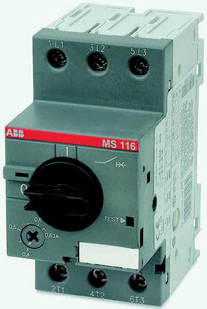 This is Manual 3P Motor Protection Circuit Breaker 690 V ac 1 3 Phase IP20 manufactured by ABB. The manufacturer part number is MS116-0.16. The product ms116, is a highly preferred choice for users. It has an overall width of 45mm. It has an overall length of 90mm. It includes circuit breaker as motor protection component . Similarly, the product has 80.1mm of overall depth.