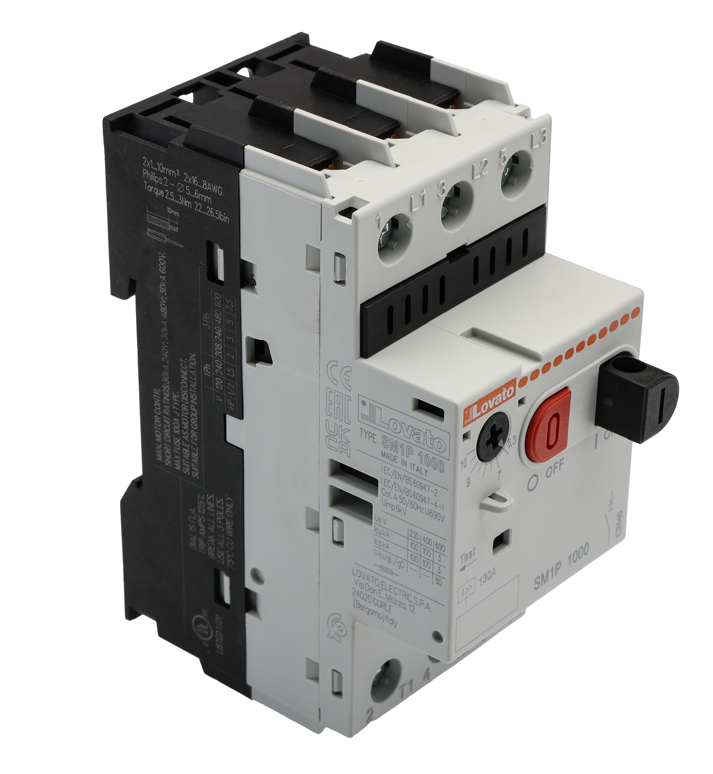This is 10 A SM1P Motor Protection Unit 400 V manufactured by Lovato. The manufacturer part number is SM1P1000. The product has a current rating of 10 a. The product consists of 3 inputs. It includes circuit breaker as motor protection component . It features sm1p range. It has a current type sensing . It has a/an motor protection circuit breaker motor protection system . Features 400 v supply voltage.