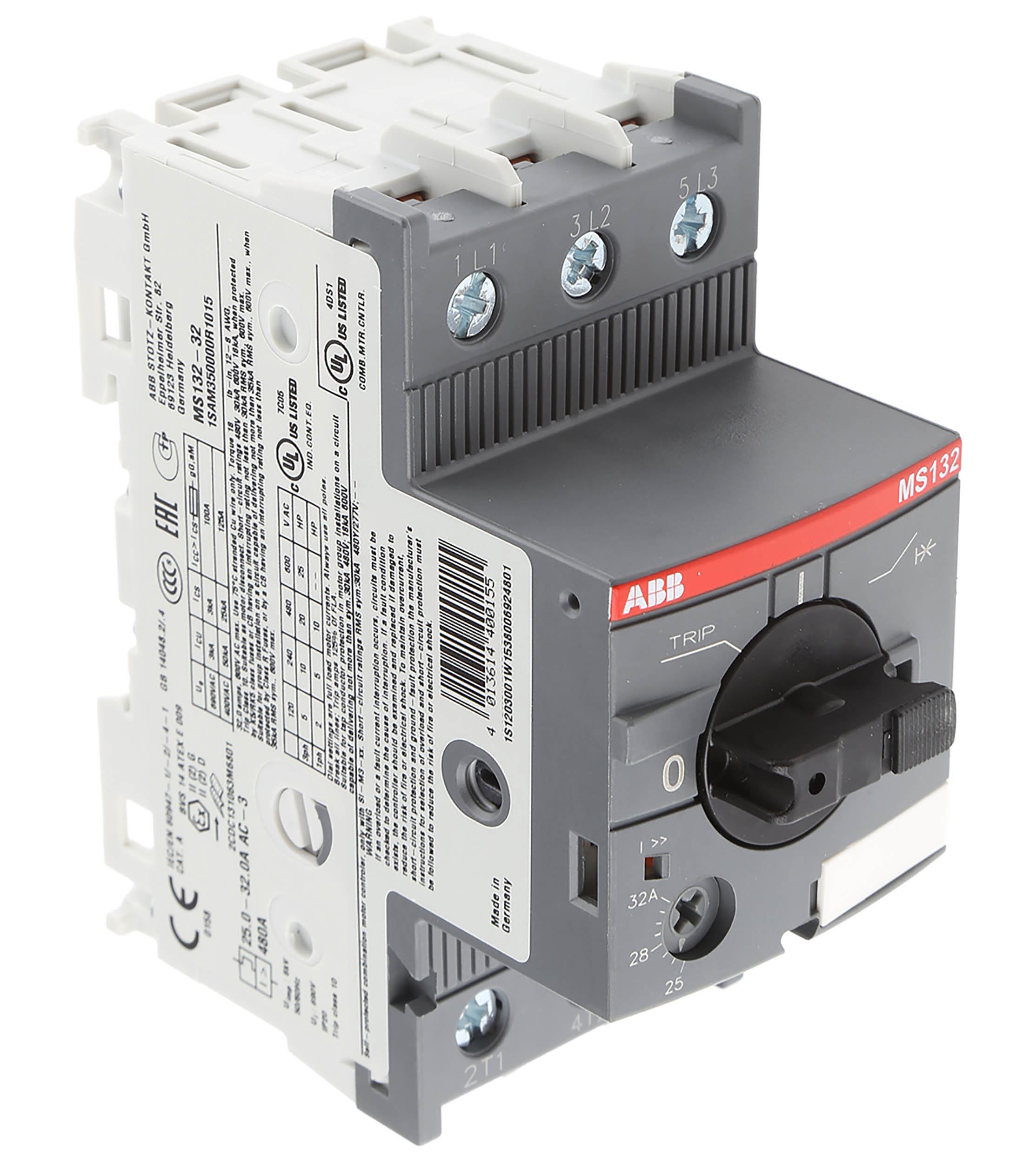 This is 25 → 32 A Motor Protection Circuit Breaker manufactured by ABB. The manufacturer part number is 1SAM350000R1015 MS132-32. The product has a current rating of 25 → 32 a. With a 25hp of horse power rating . Moreover, the product has a nominal 690 v voltage rating. The product ms132, is a highly preferred choice for users. It has an overall width of 45mm. It includes circuit breaker as motor protection component . It features 50 ka breaking capacity. Features 690 v supply voltage. Whereas, the minimum operating temperature of the product is -25°c. It has an overall length of 97.8mm. Similarly, the product has 81.05mm of overall depth. It has a maximum operating temperature of +70°c. It has equipped with 3 poles. The terminal is a screw type.