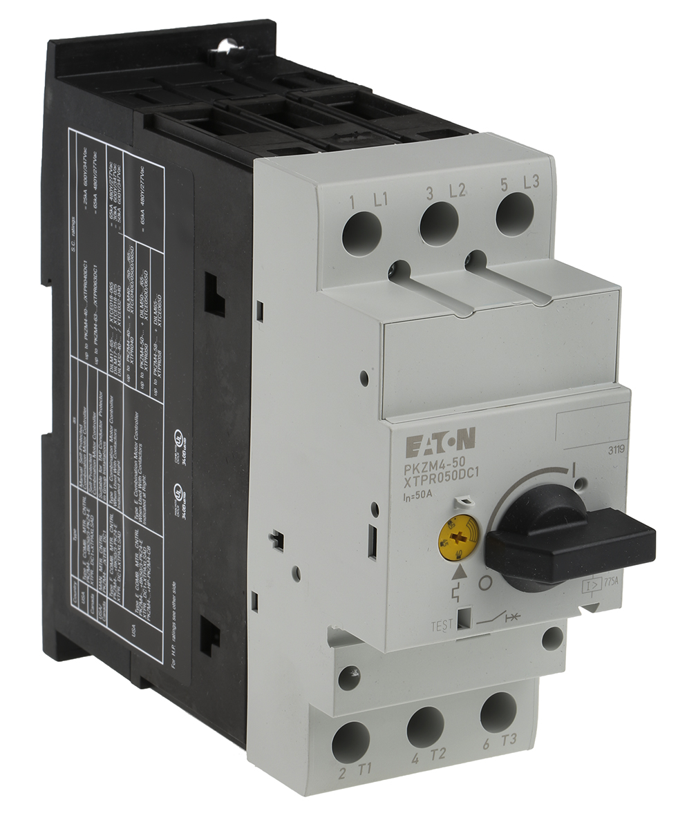 This is 40 → 50 A Motor Protection Circuit Breaker 690 V ac manufactured by Eaton. The manufacturer part number is 222355 PKZM4-50. The product has a current rating of 40 → 50 a. Whereas, the minimum operating temperature of the product is -25°c. Moreover, the product has a nominal 690 v voltage rating. It has a maximum operating temperature of +55°c. It has an overall width of 55mm. It includes circuit breaker as motor protection component . It features 50 ka, 60 ka breaking capacity. Features 690 v ac supply voltage. It has an overall length of 140mm. Similarly, the product has 160mm of overall depth. It has equipped with 3 poles. The terminal is a screw type.