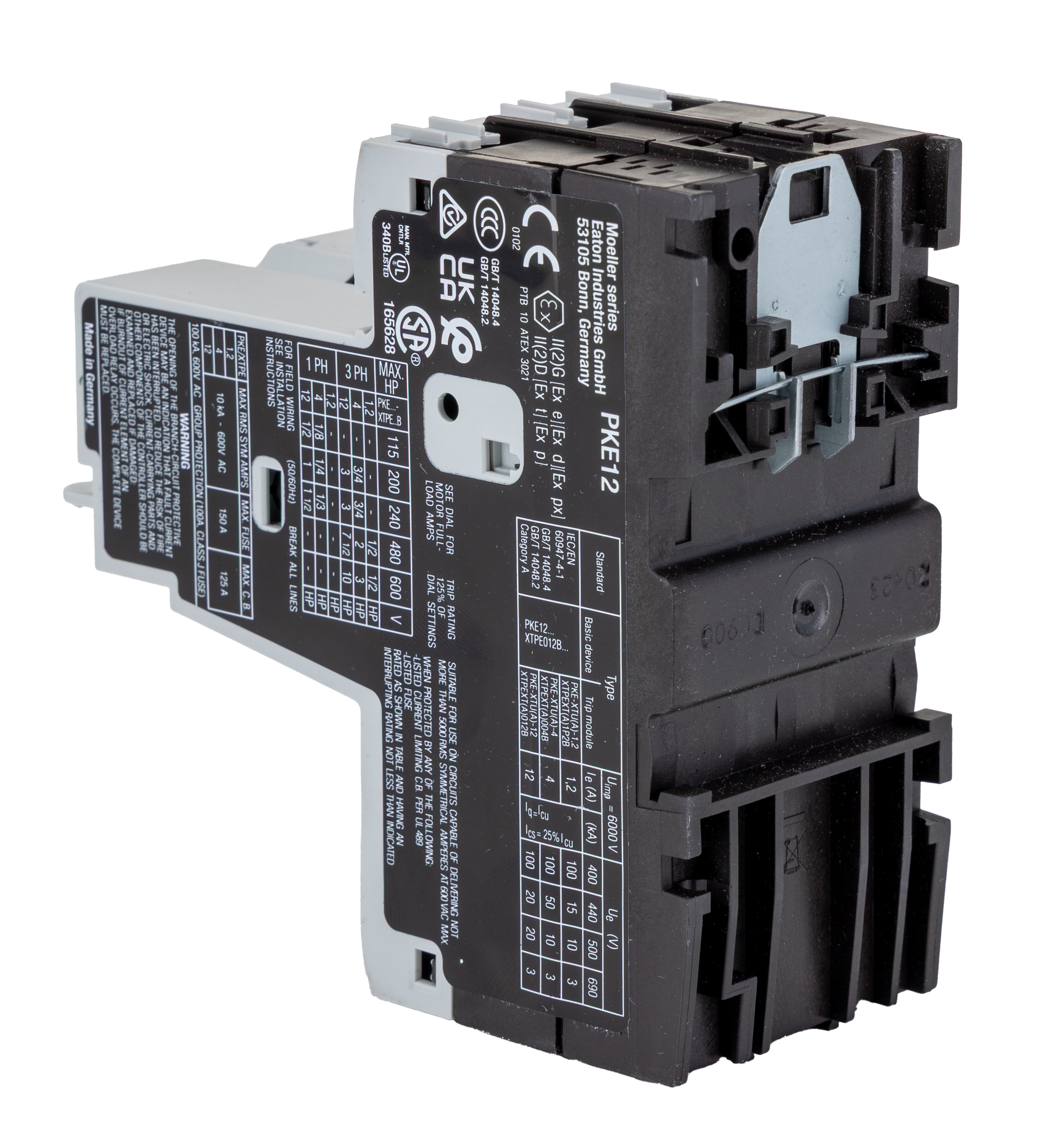 This is 0.3 → 1.2 A Motor Protection Circuit Breaker 690 V ac manufactured by Eaton. The manufacturer part number is 121721 PKE12. The product has a current rating of 0.3 → 12 a. It has an overall width of 45mm. It includes circuit breaker as motor protection component . Features 690 v ac supply voltage. It has an overall length of 101mm. Similarly, the product has 102.5mm of overall depth.