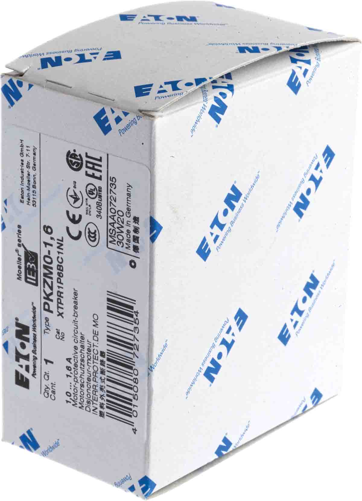 This is 1.6 A Motor Protection Circuit Breaker 690 V manufactured by Eaton. The manufacturer part number is 072735 PKZM0-1,6. The product has a current rating of 1.6 a. Whereas, the minimum operating temperature of the product is +25°c. The product pkzm 0, is a highly preferred choice for users. It has an overall width of 45mm. It includes circuit breaker as motor protection component . Features 690 v supply voltage. It has an overall length of 76mm. Similarly, the product has 93mm of overall depth. It has a maximum operating temperature of +40°c.