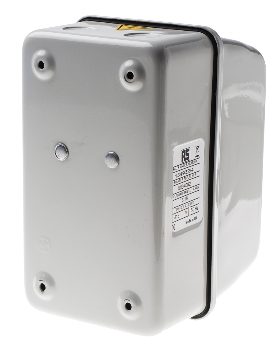 This is 7.5 kW Manual 3PST DOL Starter 415 V 3 Phase IP55 manufactured by RS Pro. The manufacturer part number is 909-4082. The product has a current rating of 13 → 18 a. The product complies with all safety standards, such as bs en 60947/60529, iec 947. The product is available in surface mount configuration. It is IP rated with ip55. Its motor starter functionality is manual . The product 3000, is a highly preferred choice for users. It has an overall width of 174mm. Moreover, the product has a nominal 415 v ac voltage rating. It has a standard dol type motor starter . It has an overall length of 104mm. Concerning phase options, it features 3 configuration. Similarly, the product has 134mm of overall depth. Feature 7.5 kw of power rating. It contains colour ral 7035 light grey, hand reset thermal overloads, provision for remote control as additional features . It has equipped with 3p poles. It includes an enclosure yes .