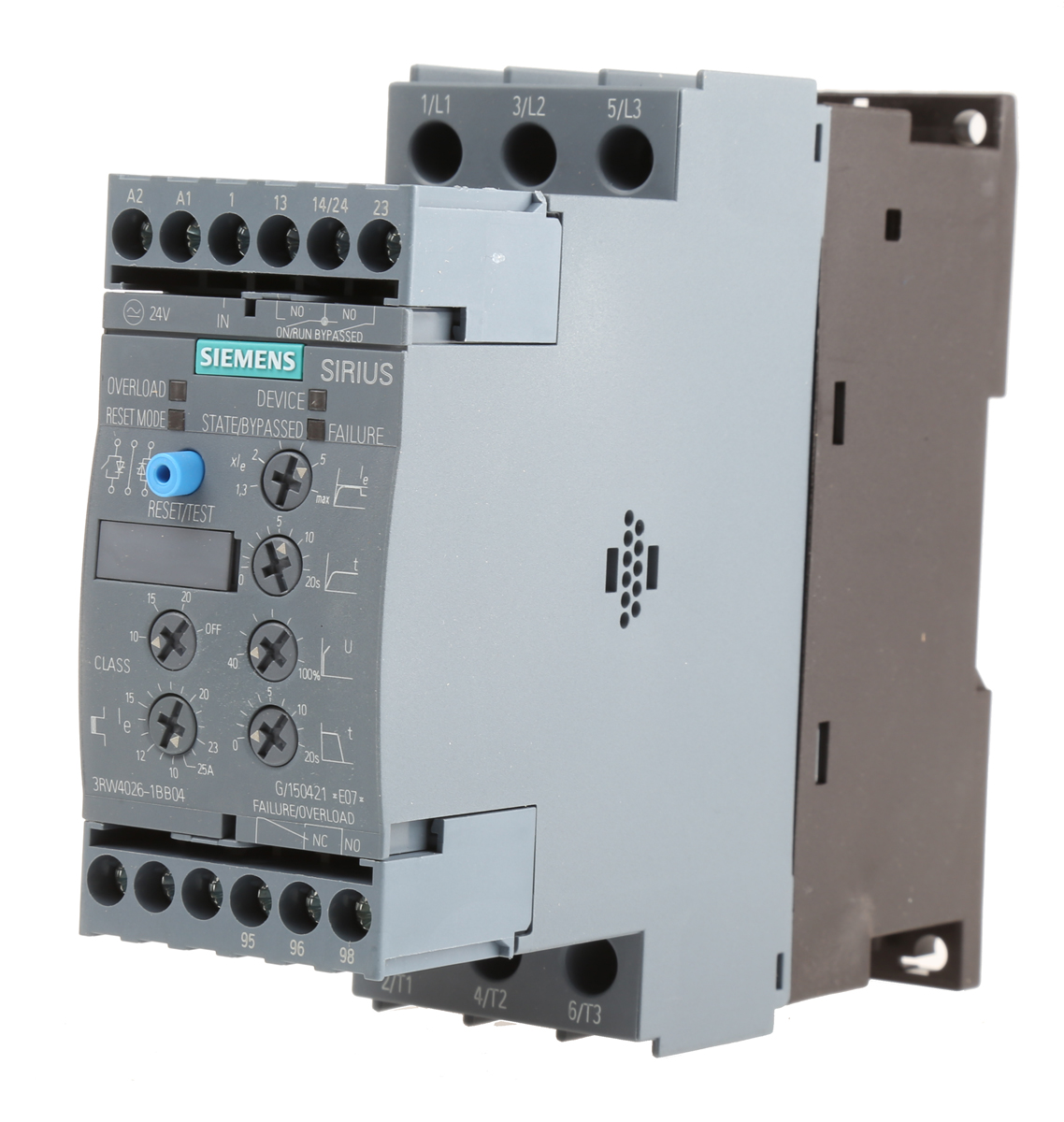 This is 25 A Soft Starter 3RW40 Series IP20 11 kW manufactured by Siemens. The manufacturer part number is 3RW4026-1BB04. Is it a better world product? yes. The product has a current rating of 25 a. The product is available in chassis mount configuration. It is IP rated with ip20. The product 3rw40, is a highly preferred choice for users. It has an overall width of 45mm. Moreover, the product has a nominal 400 v ac voltage rating. It has a standard soft start type motor starter . It features sirius 3rw range. It has an overall length of 154mm. Concerning phase options, it features 3 configuration. Similarly, the product has 125mm of overall depth. Feature 11 kw of power rating.