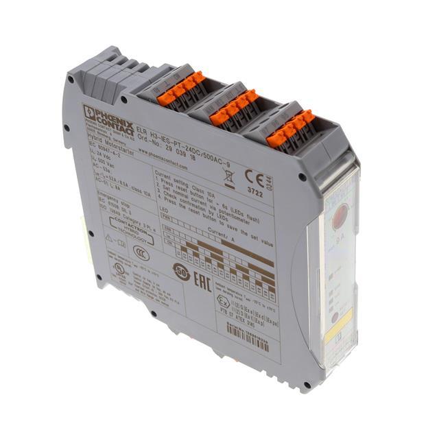 This is Hybrid Motor Starter 24 V dc 9 A manufactured by Phoenix Contact. The manufacturer part number is 2903918. The product is available in din rail configuration. The product elr h3-ies-pt-24dc/500ac-9, is a highly preferred choice for users. It has an overall width of 22.5mm. It features contactron range. It has an overall length of 107.4mm. Similarly, the product has 113.7mm of overall depth. The product is rohs3 compliant. The product has -25°c ~ 70°c operating temperature range. This high-efficiency motor is a ac motor. It comes in module configuration. In addition, it is reach affected. While, the output current includes 9a. The phoenix contact's product offers user-desired applications. The given watts of the product include 14.6 w. Furthermore, it is a type of motor starter Control/Drive type. Its typical moisture sensitivity level is not applicable. The product consists of 1 motors. It has a long 7 weeks standard lead time. The product elr, is a highly preferred choice for users. The given load voltage is 42 ~ 550v. In addition, bulk is the available packaging type of the product. It has optimum voltage supply of 19.2 ~ 30vdc.