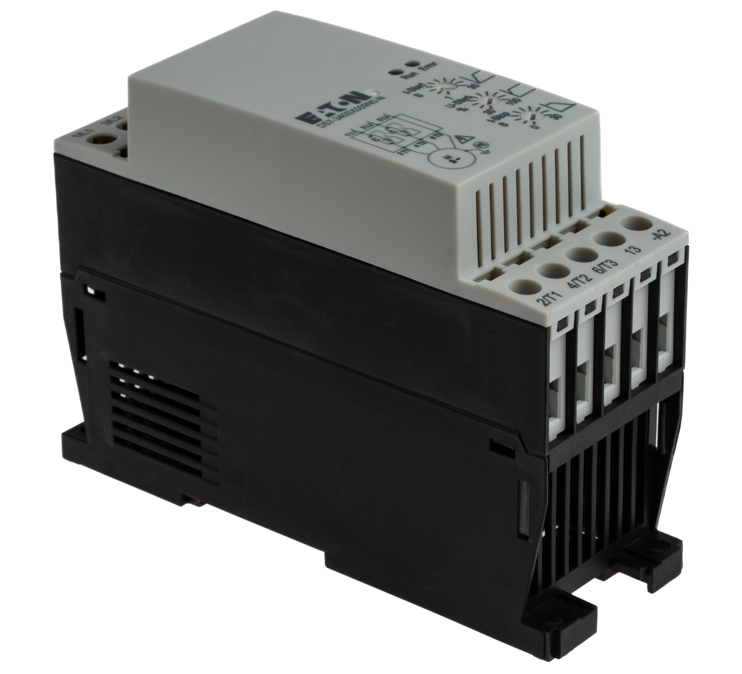 This is 4 kW Soft Starter 460 V ac 3 Phase IP20 manufactured by Eaton. The manufacturer part number is 134910 DS7-340SX009N0-N. The product has a current rating of 9 a. The product complies with all safety standards, such as csa c22.2 no. 14, iec/en 60947-1, iec/en 60947-4-2, ul 508. It is IP rated with ip20. It has an overall width of 95mm. Moreover, the product has a nominal 460 v ac voltage rating. It has a standard soft start type motor starter . It has an overall length of 45mm. Concerning phase options, it features 3 configuration. Similarly, the product has 130mm of overall depth. Feature 4 kw of power rating.