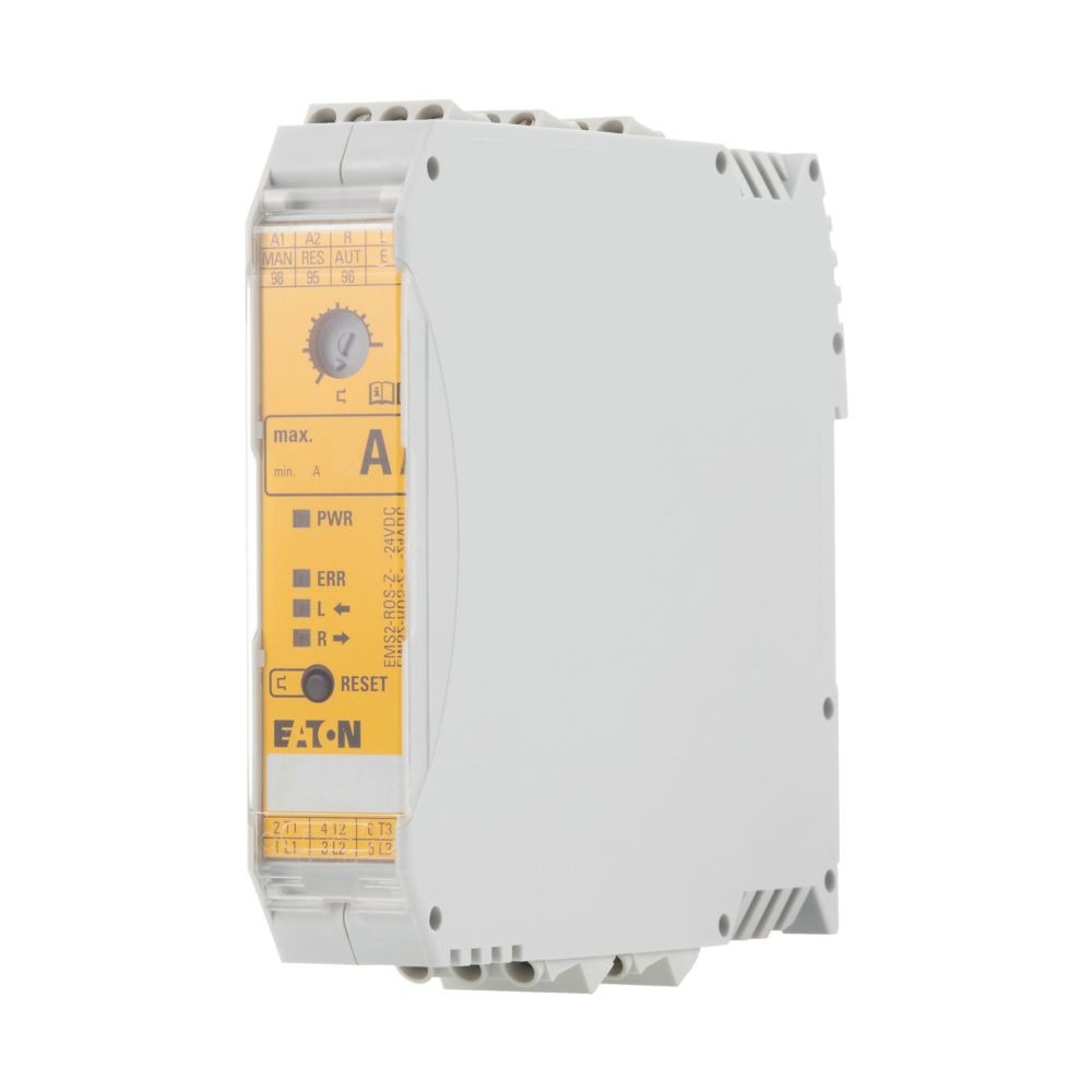 This is Moeller Starter Reversing Starter 3 kW 24 V dc 3 Phase manufactured by Eaton. The manufacturer part number is 197167 EMS2-ROS-Z-9-24VDC. The product has a current rating of 9 a. Moreover, the product has a nominal 24 v dc voltage rating. It has a standard reversing starter type motor starter . It features moeller range. Concerning phase options, it features 3 configuration. Feature 3 kw of power rating.