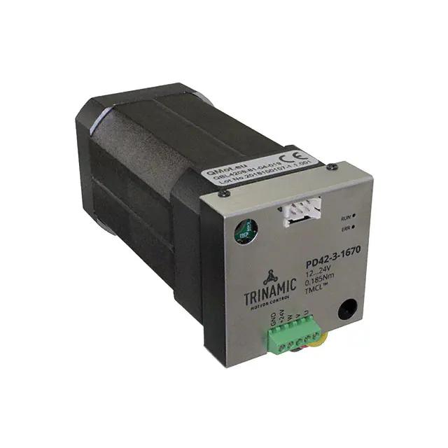 This is manufactured by Trinamic Motion Control GmbH. The manufacturer part number is PD42-3-1670-TMCL. It has a rated torque (oz-in / mNm) of 25.49 / 180. It is assigned with possible HTSUS value of 8501.10.6080. The product is rohs3 compliant. Moreover, it has wire leads with connector terminal style. The product has -20°c ~ 40°c operating temperature range. This high-efficiency motor is a brushless (bldc). It comes in dc motor configuration. It performs basic function of servomotor. It also exhibits voltage rating of 24vdc. In addition, it is reach unaffected. It has a 0.988" (25.10mm) mounting hole space. The typical length of shaft and bearing is 0.866" (22.00mm). It provides maximum rpm up to 4000 rpm. Shaft with a 0.197" (5.00mm) diameter. It is shipped in bulk package . The product's diameters include square - 1.654" x 1.654" (42.00mm x 42.00mm). It has a long 18 weeks standard lead time. Its typical moisture sensitivity level is not applicable. The splendid features of the product include integrated controller, flatted shaft. The product pandrive™, is a highly preferred choice for users. Moreover, it corresponds to pd42-3, a base product number of the product. The product is designated with the ear99 code number.