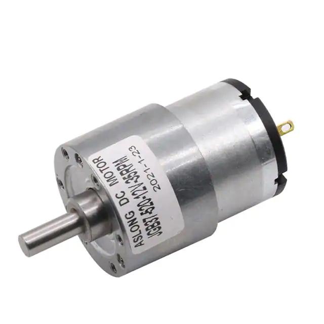 This is manufactured by Aslong motor. The manufacturer part number is ASJGB37-520-12V. It has a rated torque (oz-in / mNm) of 180.54 / 1275. It also exhibits voltage rating of 12vdc. The product is rohs3 compliant. Moreover, it has quick connect terminal style. It comes in dc motor configuration. It performs basic function of gearmotor. In addition, it is vendor undefined. It has a 1.220" (31.00mm) mounting hole space. The typical length of shaft and bearing is 0.846" (21.50mm). It provides maximum rpm up to 36 rpm. Shaft with a 0.236" (6.00mm) diameter. It is shipped in case package . The product's diameters include round - 1.260" dia (32.00mm). Features 168 gear reduction ratio. The product jgb37, is a highly preferred choice for users.