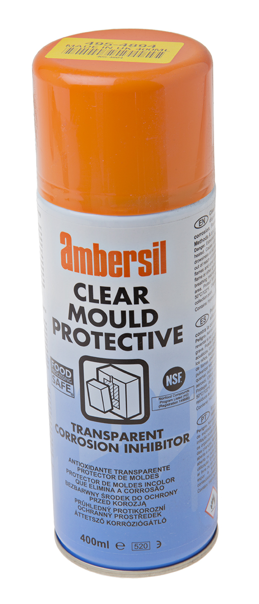 This is 400 ml Mould Release Agent Metal Plastic manufactured by Ambersil. The manufacturer part number is 31547-AB. It has compatible metal, plastic materials . It is assigned with a trade name of clear mould protective. Its base is made up of non-silicone material . It has a maximum operating temperature of +50. Its package size is approximately 400 ml .